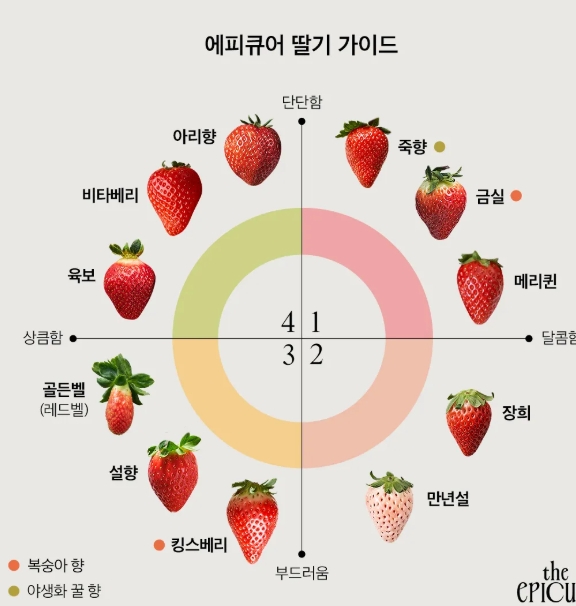 - 특징: 노란빛을 띠는 희귀 딸기 품종