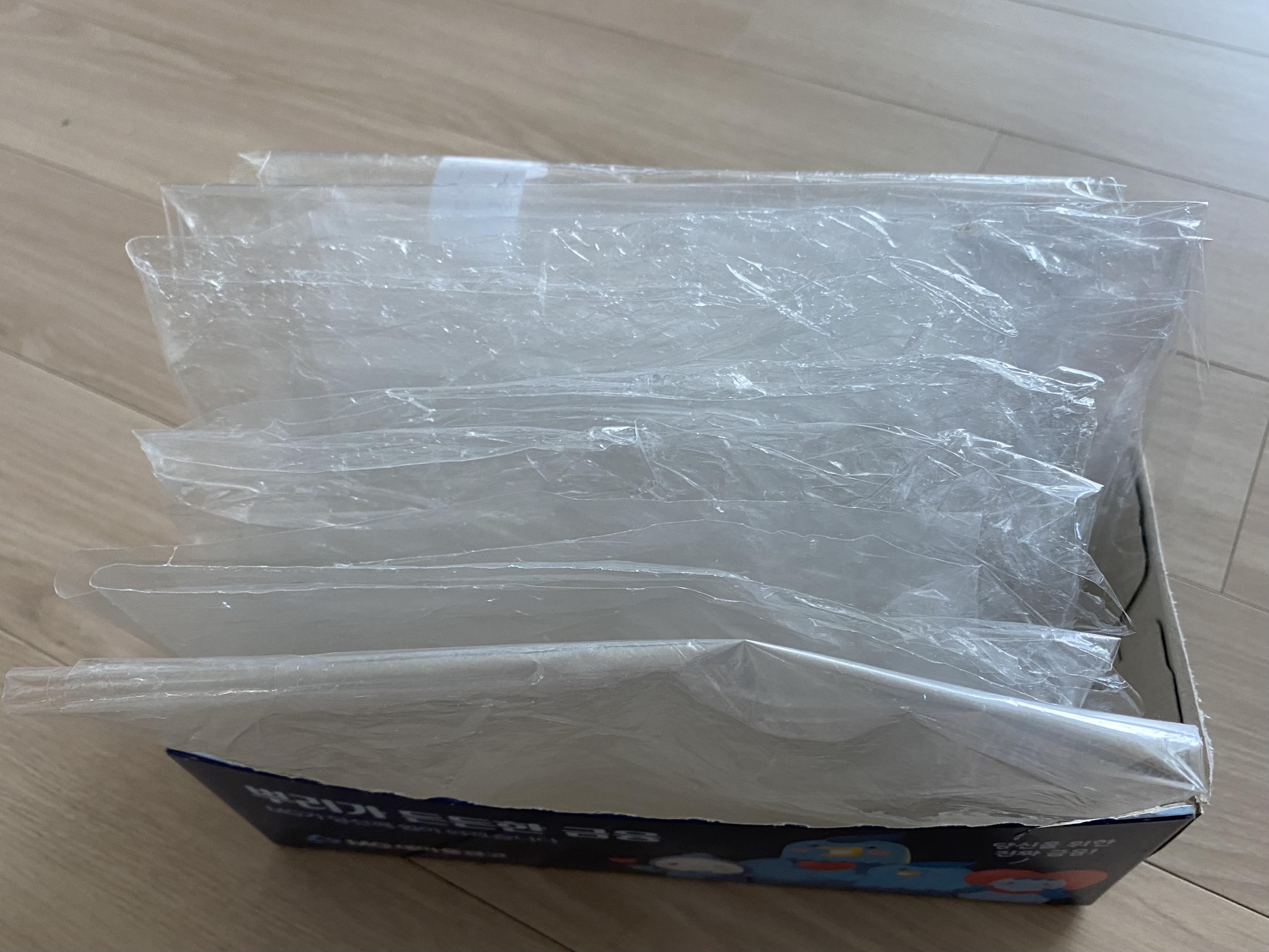 포장비닐을 한개씩 정리했어요.
